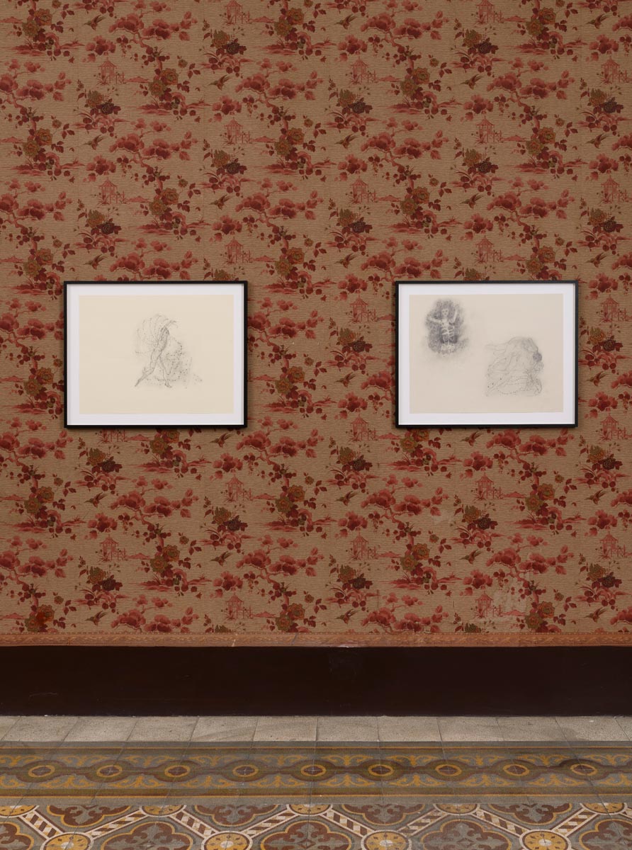 The exhibition is the outcome of a creative process that combines the artist’s work in Copenhagen with a residency in Italy, which began in Tarquinia at the Matta Archives and concluded at Indipendenza in Rome. During this experience, Oliver Bak created a new series of twelve previously unseen oil and wax on canvas works, presented alongside a selection of drawings, also previously unseen. The exhibition unfolds within the apartment, weaving its way among terrazzo floors, painted ceilings, and period wallpaper. The exhibition will be on view until January 17, 2026.