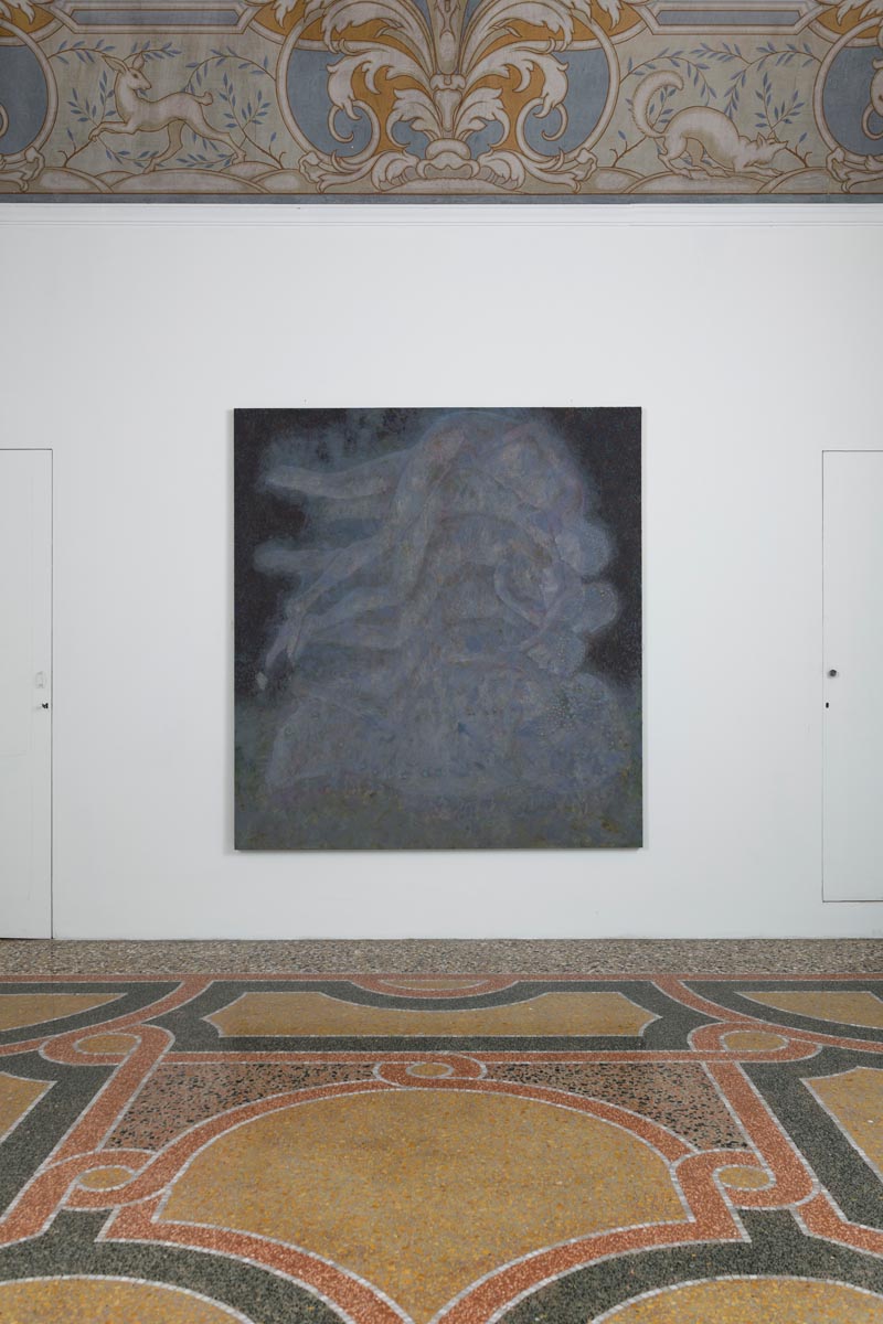 “From a remote northern kingdom and the former studio of a surrealist maestro in the outskirts of a nearby Etruscan village, Oliver Bak’s paintings have swarmed into Indipendenza, in the attic of a Roman palazzo, close to the train station. Up the broad stairs, or by the old creaking elevator, they crept into the decaying building, weaving through faded wallpaper, shaky floors, and peeling walls. They brought with them the characters that haunt them – dancers, ghosts, moths and butterflies, rubberists, chrysalises… A common theme in these migrating paintings is movement, whether physical, art-historical (Bilderfahrzeuge, or ‘image vehicles,’ Aby Warburg would say), or abstract. Their parasitic subjects always move, or have